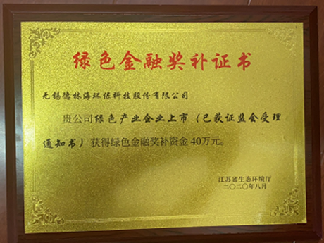喜訊:我司榮獲江蘇省生態(tài)環(huán)境廳綠色金融獎(jiǎng)補(bǔ)資金