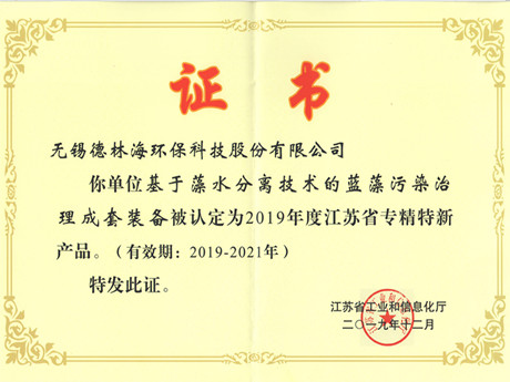 喜訊:我司的“基于藻水分離技術(shù)的藍(lán)藻污染治理成套裝備”入選江蘇省專精特新產(chǎn)品